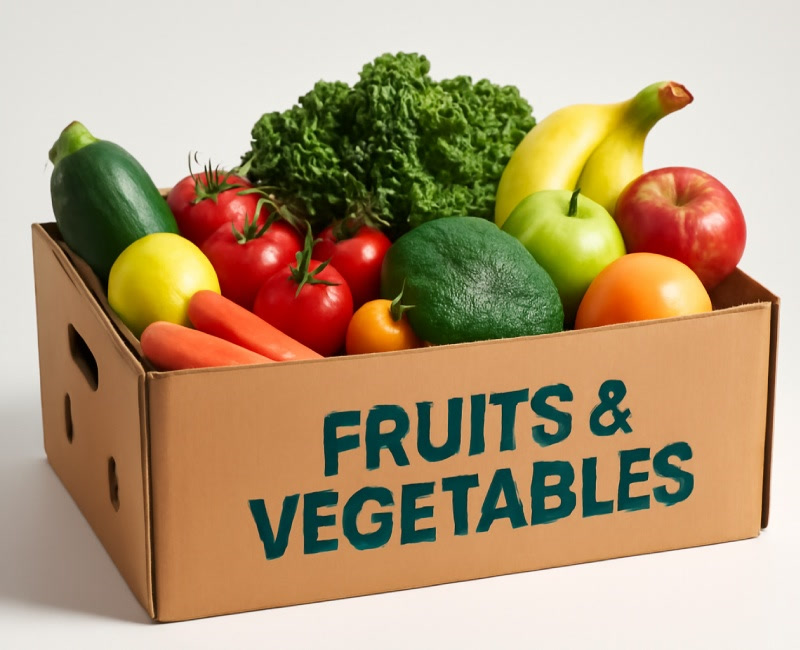 Fruits & Vegetables | Breathable, sturdy boxes for farm-to-market supply chains with ventilation and rapid stacking. | Vent-hole die-cut cartons, 5 Ply for heavier produce, white top liners for labeling. | Vent patterns for airflow, water-resistant options, reinforced handles/edges. |