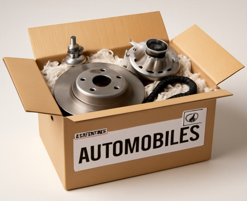 Automobiles | Tailored cartons and inserts for components, spares, and assemblies that require abrasion resistance, vibration damping, and stack strength. | 5 Ply/BC flute heavy-duty cartons, die-cut inserts, multi-depth for varied SKUs. | Shock-absorbing structures, oil/moisture-tolerant liners, barcoding/part-ID printing. |